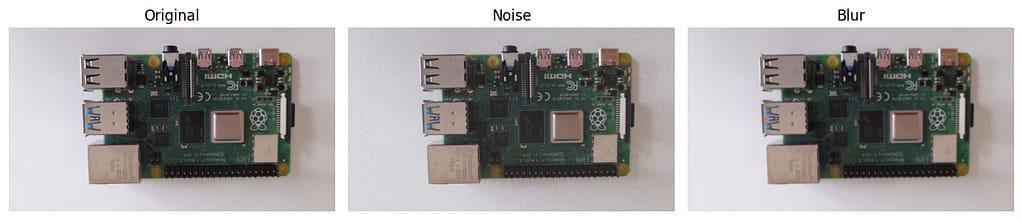 Vergleich von Originalbild, Rauschen und Unschärfe